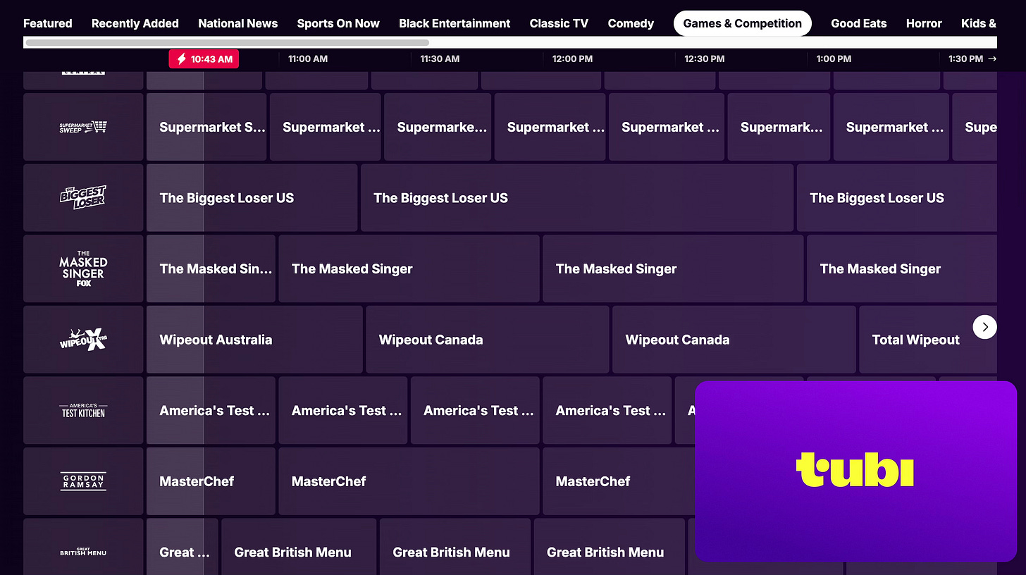 A quick look at Tubi UK’s offering suggests it is a smaller proposition at launch in comparison to the US service. The US has a huge catalogue of 200,000+ movies and TV episodes, plus has around 250 channels including live broadcast channels such as Fox, NBC and USA Today as well as FAST channels (Free Ad Supported TV channels) built around talent, shows or themes such as Gordon Ramsay, Jamie Oliver, Baywatch or The Masked Singer.